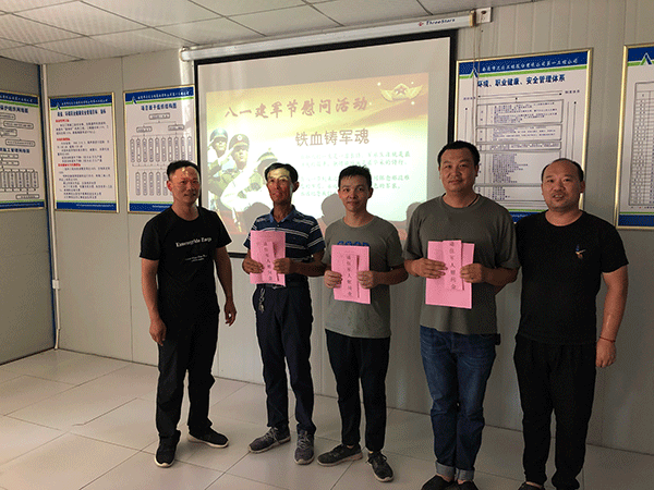 丁國東經(jīng)理向全體消防官兵和社區(qū)工作人員致以節(jié)日的問候并送上慰問品,感謝他們一直以來在維護社會穩(wěn)定,保護群眾生命財產(chǎn)安全、支持企業(yè)建設(shè)等方面作出的巨大貢獻,同時表示我們作為江蘇進新疆企業(yè),將積極配合好當(dāng)?shù)卣案髦鞴懿块T,為地方和諧穩(wěn)定發(fā)展做出應(yīng)有的貢獻。消防支隊政委、社區(qū)書記對我公司的到來表示感謝,希望今后繼續(xù)保持“軍民一家親”的深情友誼,為共同構(gòu)建和諧穩(wěn)定的新疆作出貢獻。