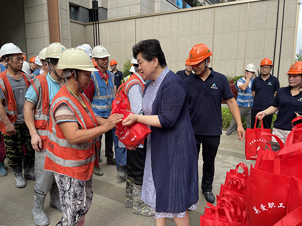葛玉琴深入施工現(xiàn)場(chǎng),看望慰問了高溫下堅(jiān)守崗位的一線職工,為他們送上慰問用品,并叮囑大家注意安全,做好防暑降溫工作。她說,防暑降溫是夏季重要?jiǎng)趧?dòng)保護(hù)工作,直接關(guān)系廣大勞動(dòng)者的身體健康和企業(yè)的安全生產(chǎn)。她希望,大家共同努力,讓安全意識(shí)更加深入人心,切實(shí)筑牢安全屏障,項(xiàng)目部要合理安排作業(yè)時(shí)間,做好防暑應(yīng)急措施,切實(shí)維護(hù)建設(shè)者勞動(dòng)安全健康權(quán)益。