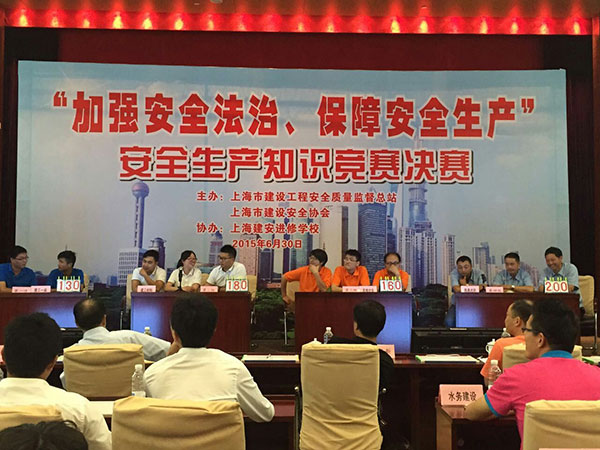 7月3日下午,由上海市建設(shè)工程安全質(zhì)量監(jiān)督總站、上海市建設(shè)安全協(xié)會(huì)舉辦的“加強(qiáng)安全法治、保障安全生產(chǎn)”安全生產(chǎn)知識(shí)競(jìng)賽決賽,在上海建工四建集團(tuán)如期舉行。由朱興龍、郭勇、邵建華組成的達(dá)欣代表隊(duì)歷經(jīng)初賽,在數(shù)十家參賽單位中以優(yōu)異的成績(jī)?nèi)雵鷽Q賽。經(jīng)過激烈爭(zhēng)奪,第一工程公司代表隊(duì)最終獲得了決賽團(tuán)體三等獎(jiǎng)。